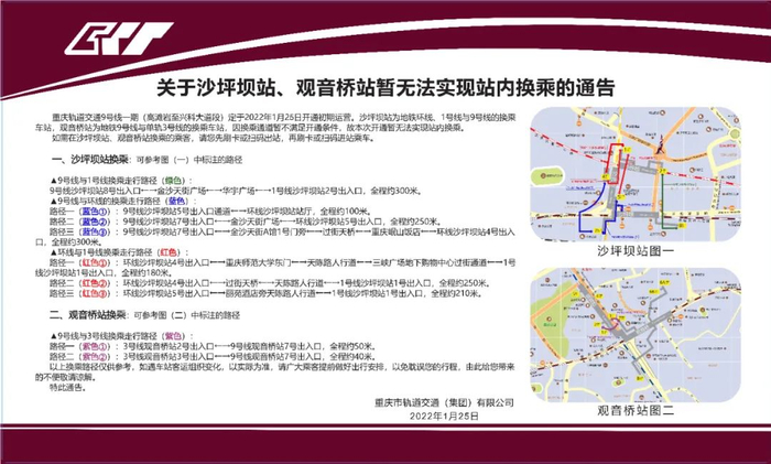 ☞ 轨道沙坪坝、观音桥两座车站支持虚拟换乘