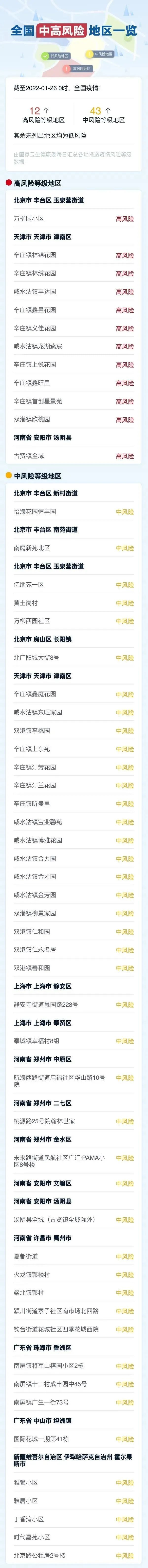 ☞ 全国疫情风险地区汇总