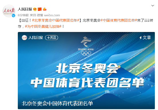原标题:北京冬奥会中国体育代表团名单
