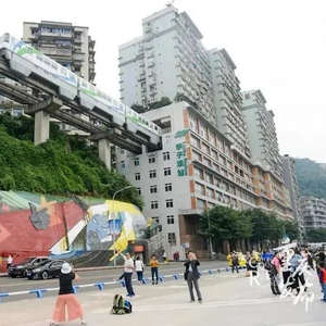 轨道列车穿楼景观。(资料图)邹乐 摄