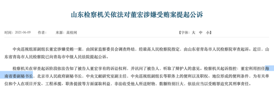 值得一提的是,在董宏落马之前,他的官方简历并未被公开。一直到2021年6月,董宏被提起公诉时,官方首次披露了董宏的相关履历。