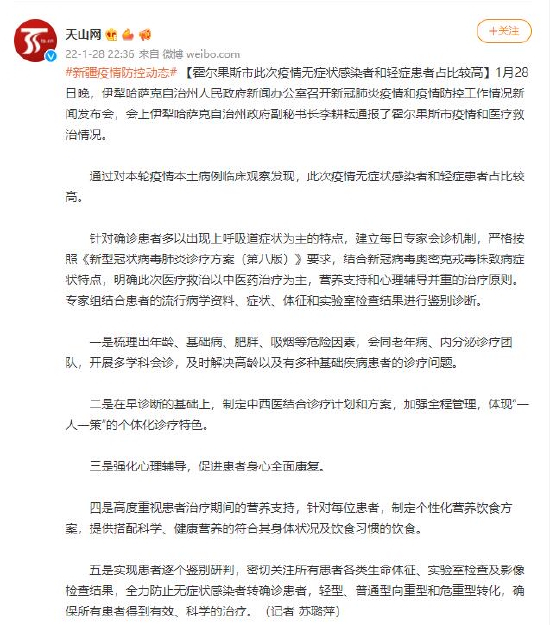 原标题:霍尔果斯市此次疫情无症状感染者和轻症患者占比较高