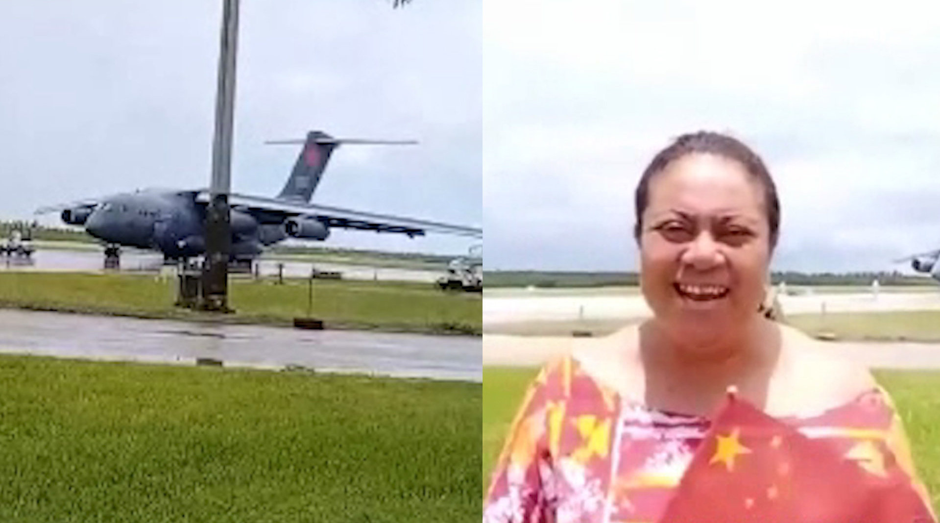 现场!中国军机运-20搭载救援物资抵达汤加 当地民众举五星红旗致谢