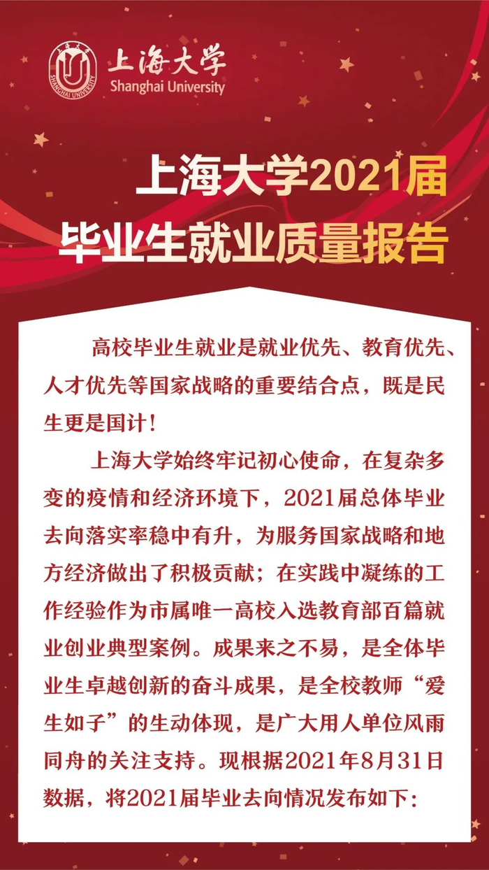 原标题:重磅发布!上海大学2021届毕业生就业质量报告(图解版)来啦!