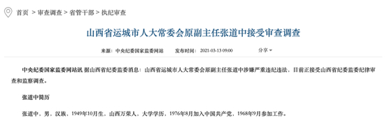 2021年3月13日,张道中涉嫌严重违纪违法,接受山西省纪委监委纪律审查和监察调查。
