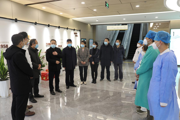 吕毅、成进一行先后前往西安交大第二附属医院、口腔医院,对临近过年辛苦值班,辛勤工作的医务工作者表示慰问和感谢,送去新春祝福。
