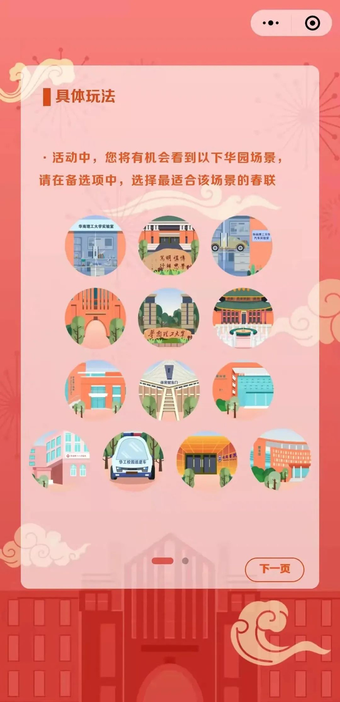 在活动最后,分享截图或该小程序到朋友圈,将朋友圈截图发送至华南理工大学官方微信公众号后台,将有机会获得华工专属定制文创产品。
