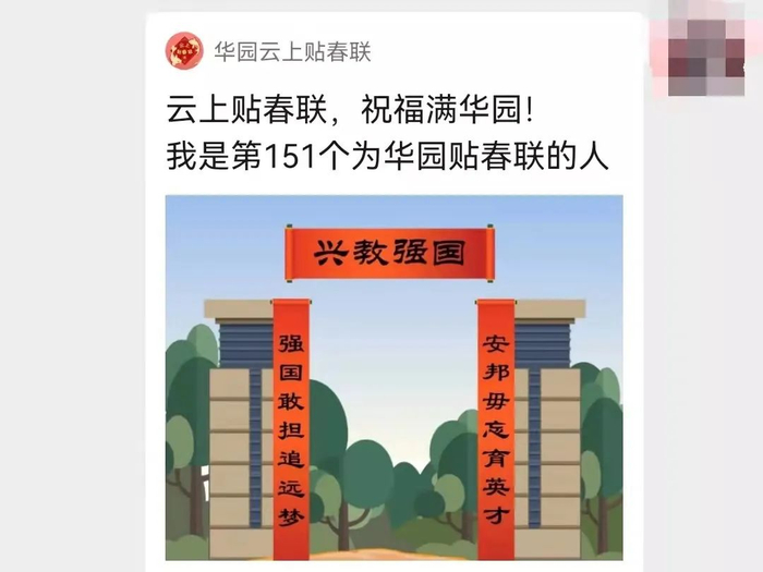 完成游戏,分享到朋友圈,接力为华园贴春联!