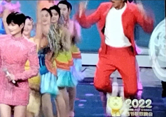 当晚,邓超穿一身喜庆红色西装,上台时便十分活跃,与身旁的李宇春、易烊千玺对比明显,他全程又蹦又跳十分活跃,孙俪还找到一张邓超跳出画面的照片相当搞笑。