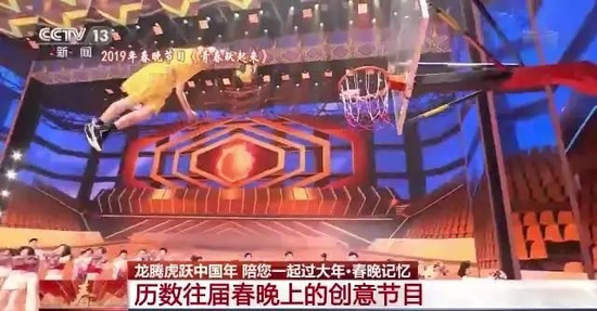 2019年由演员李易峰、朱一龙携手扣篮、花式蹦床扣篮等表演队带来的创意表演《青春跃起来》深受年轻观众喜爱。通过糅合花式篮球、体育、舞蹈等多种形式,配以动感的音乐,被观众评为春晚舞台上最“燃烧”的节目。