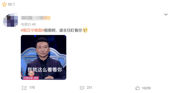 随后,撒贝宁就凭借“虎头虎脑不会嘴瓢”,立即又登上了一次热搜。
