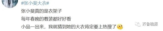 还记得去年春晚,张小斐的衣服登上热搜。今年大家再次讨论起#张小斐的大衣#。