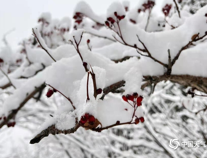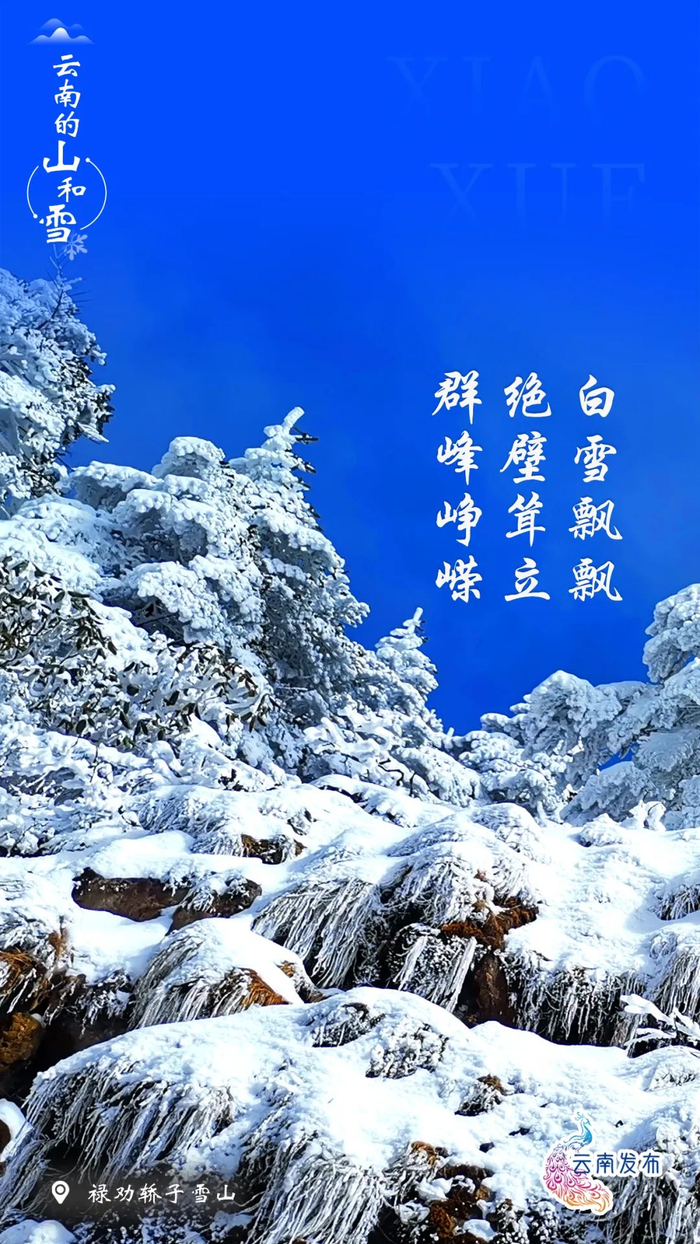 作为中国纬度较低的季节性雪山,轿子雪山最高海拔4223米,冬春两季山顶会有积雪。树梢上挂满冰渣,树枝上结出“雾凇”。