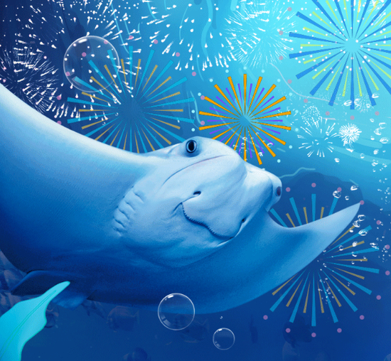 长风海洋世界新春期间带你玩转水族馆与鳐鱼湾,海底小纵队人偶见面会、对对碰大考验、巧手折纸、水下新年横幅等活动送上重重惊喜。