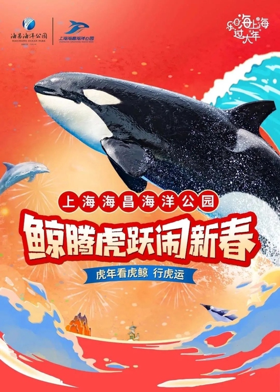 上海海昌海洋公园上演虎年新春特别节目《海天鲸焰·水幕光影秀》《海狮特快》《龙王献宝》,海派新春庙会让你大饱口福,欢度新年。
