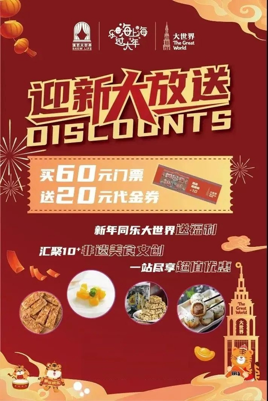 新春佳节,大世界推出重磅文艺表演、新春限定非遗手作、沪上特色传统美食,种类繁多,精彩不停歇,每天还有不同的DIY体验等你来。