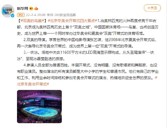 原标题:双奥的鸟巢!北京冬奥会开幕式四大看点