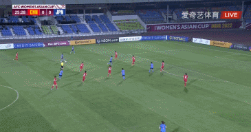 本场比赛,中国队头号球星王霜因脚伤缺阵,在这样的情况下,主帅水庆霞选择在开场后就主动退守。占据控球率优势的日本队连续组织进攻。