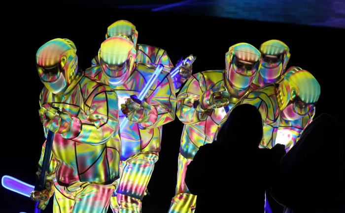 “这个部分的排练并不是很费劲。”分场导演陶雯婷认为,作为科技冬奥的标志性表演,五环呈现更多是在考验装置和影像的层层咬合,“合成时,我们会以音乐的点为基准发出口令,在那一秒钟,影像、装置都要对位,编程等方面的工作必须分秒不差。”一旦咬合不准,就可能出现激光还未到位、“冰立方”已经开始碎裂等情况,“奇幻感”会被瞬间破坏。