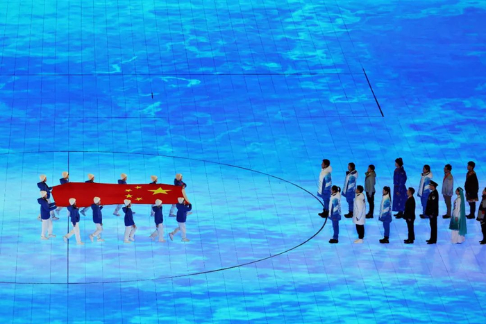 “国旗入场是奥运会开幕式的重要环节,它允许举办国去多用一些心思。”总导演张艺谋说。2008年北京奥运会开幕式上,56个民族的孩子簇拥着五星红旗走进鸟巢,“效果很好,这一次怎么办?我们决定从‘人民性’入手。”在张艺谋看来,场上的近200位代表是全体中国人民的缩影,他们站成两排,彼此间没有明显的分界,英模也在人群中,因为大家都是人民的一分子。“人民和国旗的近距离接触”这一行为本身没有“伟大的表演感”,却充满了极致的不可分割的深情,能直抵人心。