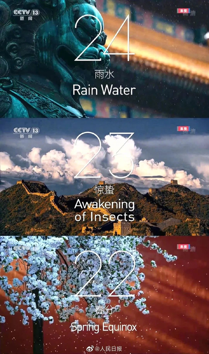 随着开幕式拉开帷幕,一场属于中国人独有的倒计时环节率先映入眼帘。与以往单独以数字为序不同的是,此次倒计时环节采用的是中国传统24节气。雨水、惊蛰、春分……冬至、小寒、大寒、立春!一个个中国传统节气映入眼帘,开幕式的脚步愈发临近。
