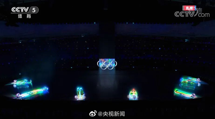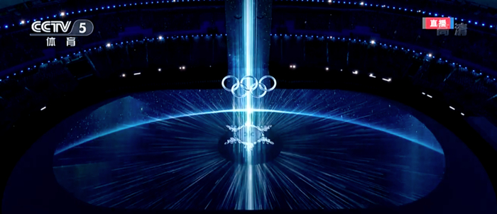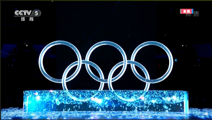 在开幕式中,用激光雕刻出的“冰雪五环”璀璨夺目,现场观众为之惊呼鼓掌。