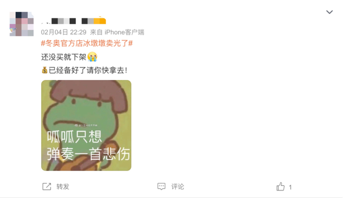 也有网友表示太难抢了,慢1秒就没了;购物车是昨天加的,货是今天下架的,都不知道啥时候开始卖的。众多微博网友都留言表达了对“冰墩墩”的喜爱,同时,求官方尽快补货。