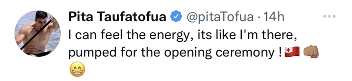 在发布上述推文的约一小时前,塔乌法托法发推称,“我能感觉到力量,就好像我也在那里一样,为开幕式打气!”↓