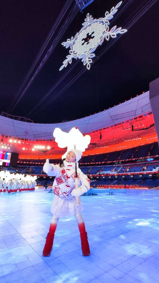 回顾冬奥会开幕式演出排练过程,让徐书元感到开心的时刻是——“老师帮助我们一遍一遍修改动作,展现最好的精神面貌”,这让她感动,也“非常有成就感”。