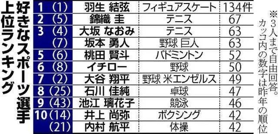 ·2021年《读卖新闻》最受欢迎日本运动员榜单。