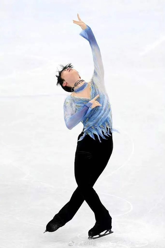 在花样滑冰男单短节目比赛中,他第21个出场。伴着曲子,他在冰面上自由滑行、高跳、转圈圈,每一次腾跃都很轻盈,还是那个翩翩起舞的少年。