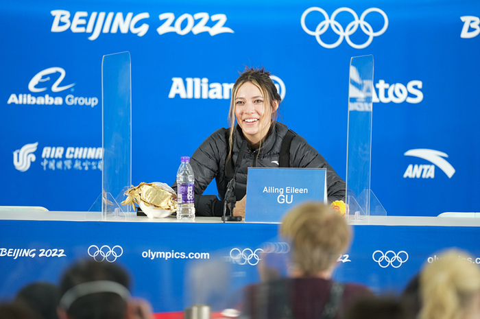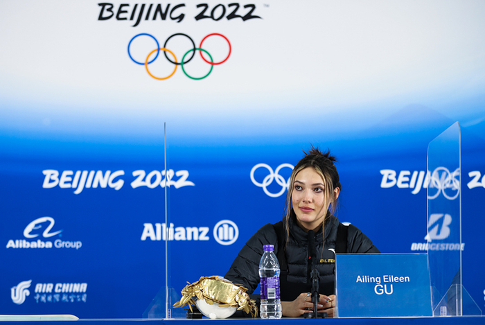 2022年2月8日,北京,2022北京冬奥会自由式滑雪女子大跳台决赛,谷爱凌出席发布会。图源:视觉中国