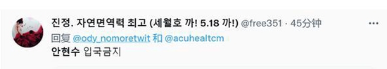 有网民呼吁不让安贤洙回韩国↓