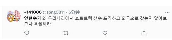 “搞清楚安贤洙为什么放弃韩国短道速滑选手身份去国外,然后再骂他吧。”