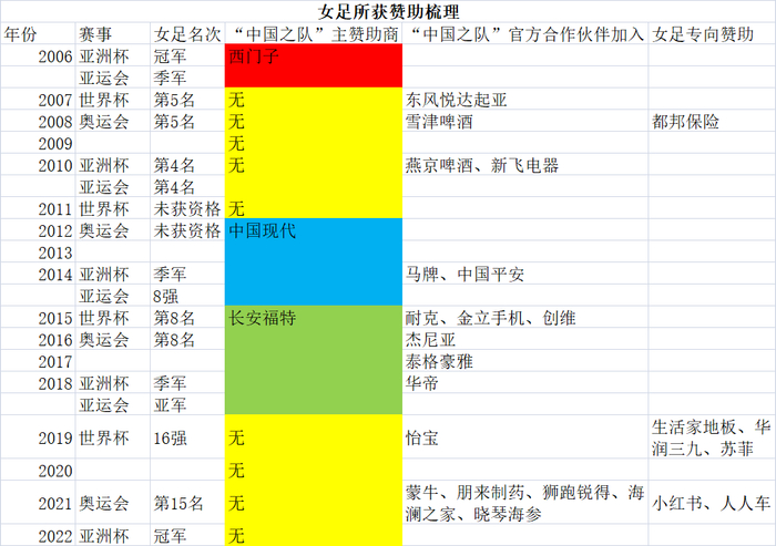 原标题:中国女足背后的赞助商:屈指可数,与男足成绩挂钩