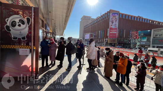 王府井工美大厦北京2022官方特许商品旗舰店门口排队的人们   摄影:《中国经济周刊》首席摄影记者 肖翊