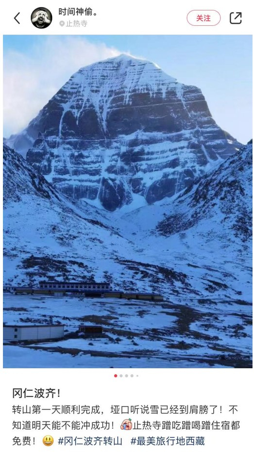 另据知情人介绍,一个名为"时间神偷"的小红书用户是此次事件中的另一名幸存者,曾在2月1日发布相关笔记,表示自己"转山第一天顺利完成,目前在止热寺停留"。不过,该用户后来没有再更新笔记。