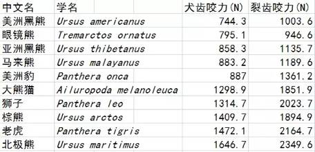 哺乳动物牙齿咬合力前10名