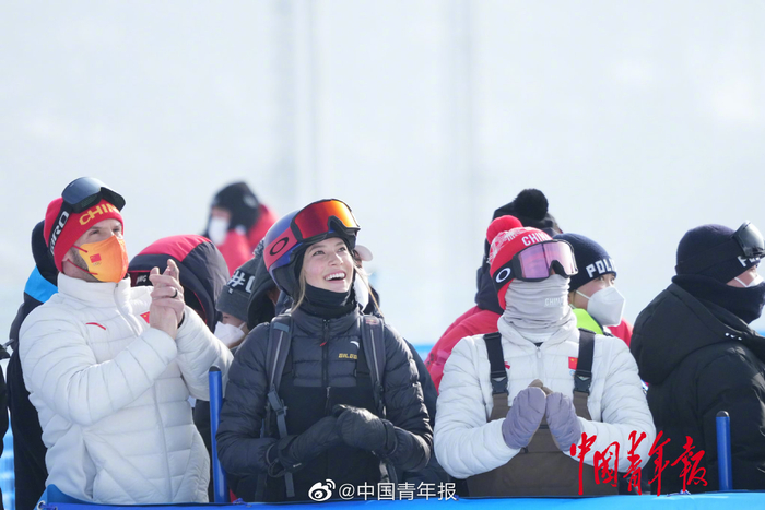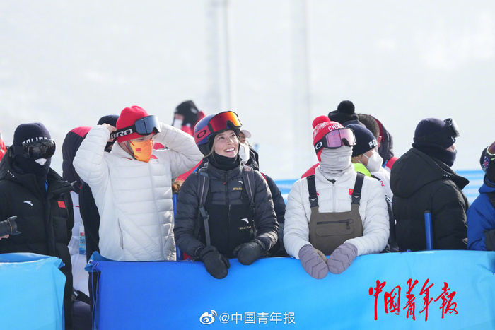 在崇礼的雪场,谷爱凌、中国冬奥名将张虹、国际奥委会主席巴赫也来到现场为选手们加油。