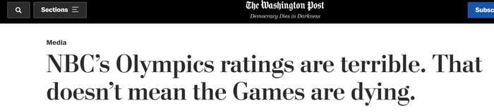 文章提到,虽然新闻报道主要集中在令人苦恼的电视收视率上,但 NBC 通过在 TikTok、YouTube、脸书、Instagram、推特和其他数字平台上传播各种精彩片段,悄无声息地培养起广泛的奥运关注群体。