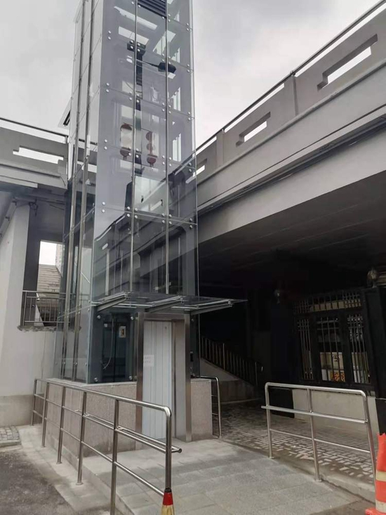 据道运局介绍,电梯载重量630公斤,限载8人,为直立电梯,轿厢尺寸为1.1米×1.4米。电梯内同步增设了空调、视频监控、盲文按钮、报层音箱等设施,打造满足无障碍化和适应老人要求的友好出行环境。电梯外立面采用全透明玻璃幕墙样式,玻璃外贴亚光隔热膜,用以隔热并防止光污染。