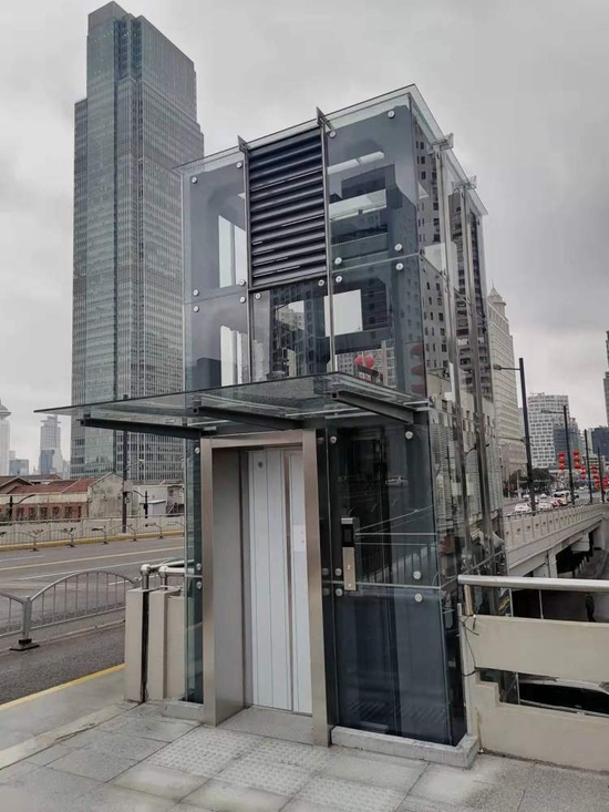 记者还发现,加装的直立景观电梯,嵌入原桥人行梯道平台,远离苏州河景观步道,不影响“一江一河”总体风貌。原有的人行平台也在同步加固改造,增设栏杆扶手、电梯位置指示标志等。