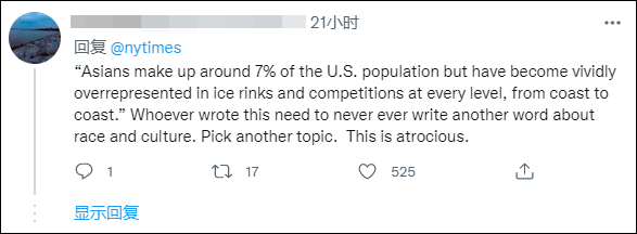“花样滑冰是一项昂贵的运动,而东亚人作为一个移民群体,他们在美国拥有最高的平均家庭收入。”《纽约时报》写道。