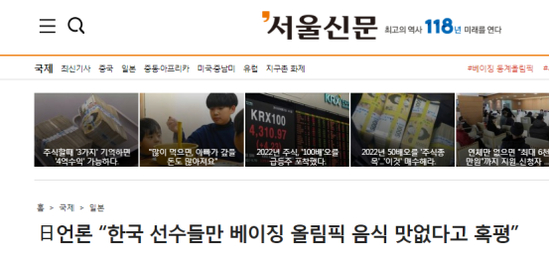 日媒:“只有韩国运动员批评北京奥运会(选手村)食物不好吃” (《首尔新闻》报道截图)