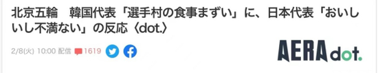 《AERA》:韩国运动员说北京冬奥村饭难吃,日本运动员说好吃,没有不满意的地方