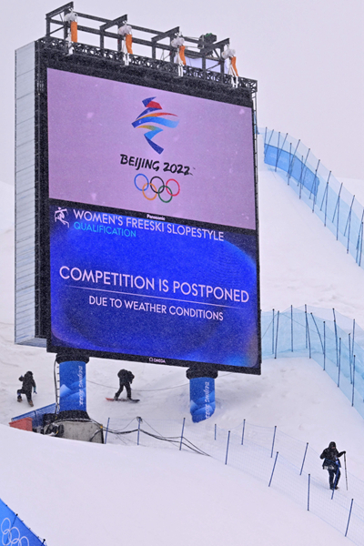 2月13日,由于天气原因,北京冬奥会自由式滑雪女子坡面障碍技巧资格赛推迟举行。(图片来源:视觉中国)