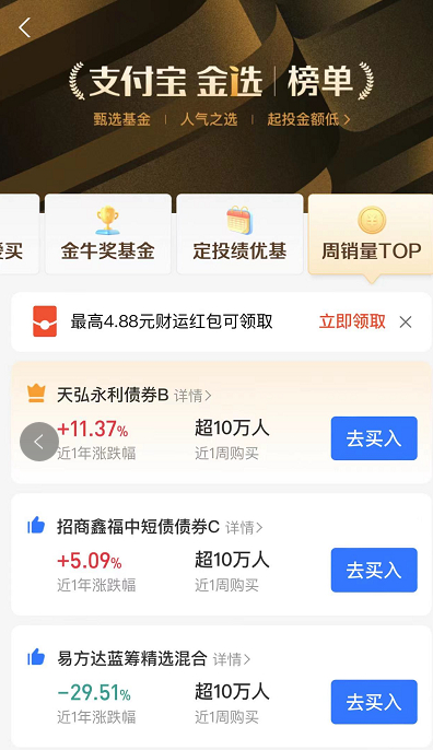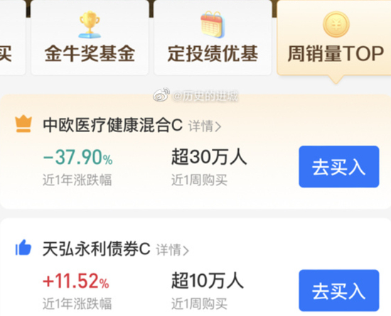 而在此前,支付宝基金周销量榜单显示,葛兰的“中欧医疗健康”排名第一,近一年跌幅超过30%,很多基民越跌越补。支付宝榜单显示,近1周超30万人购买。