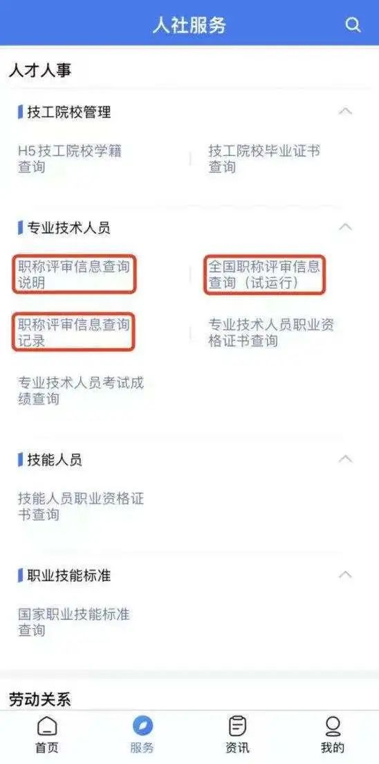 点击“人社服务”进入职称查询平台