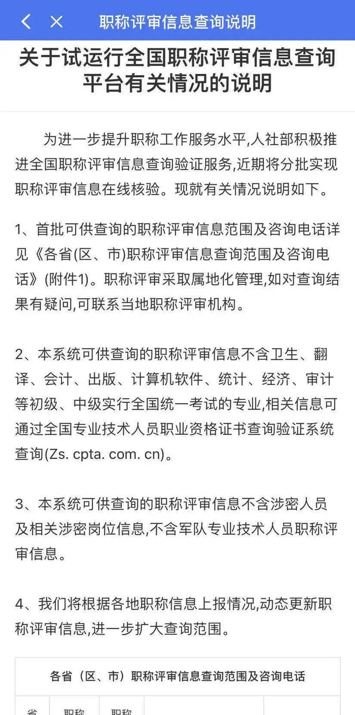 职称查询平台公布了《关于试运行全国职称评审信息查询平台有关情况的说明》,用户可以查看到首批可供查询的职称评审信息范围。