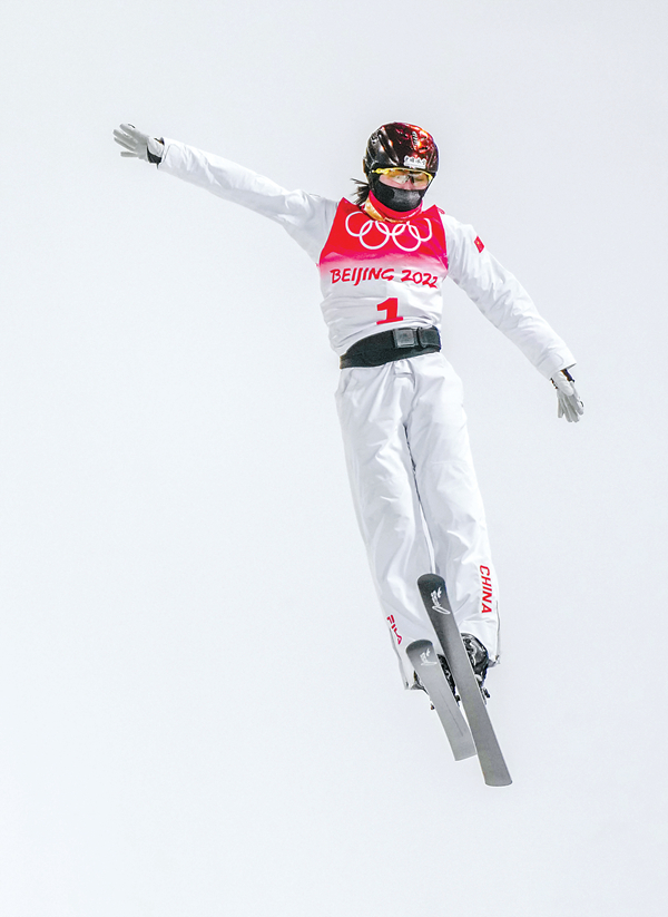 2月14日,北京2022年冬奥会自由式滑雪女子空中技巧决赛在张家口赛区云顶滑雪公园举行。图为中国选手徐梦桃在比赛中。 新华社记者 胡虎虎 摄
